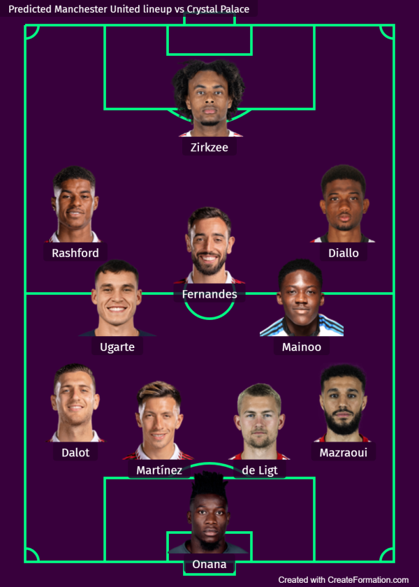 Predicted Manchester United lineup vs Crystal Palace (4-2-3-1)